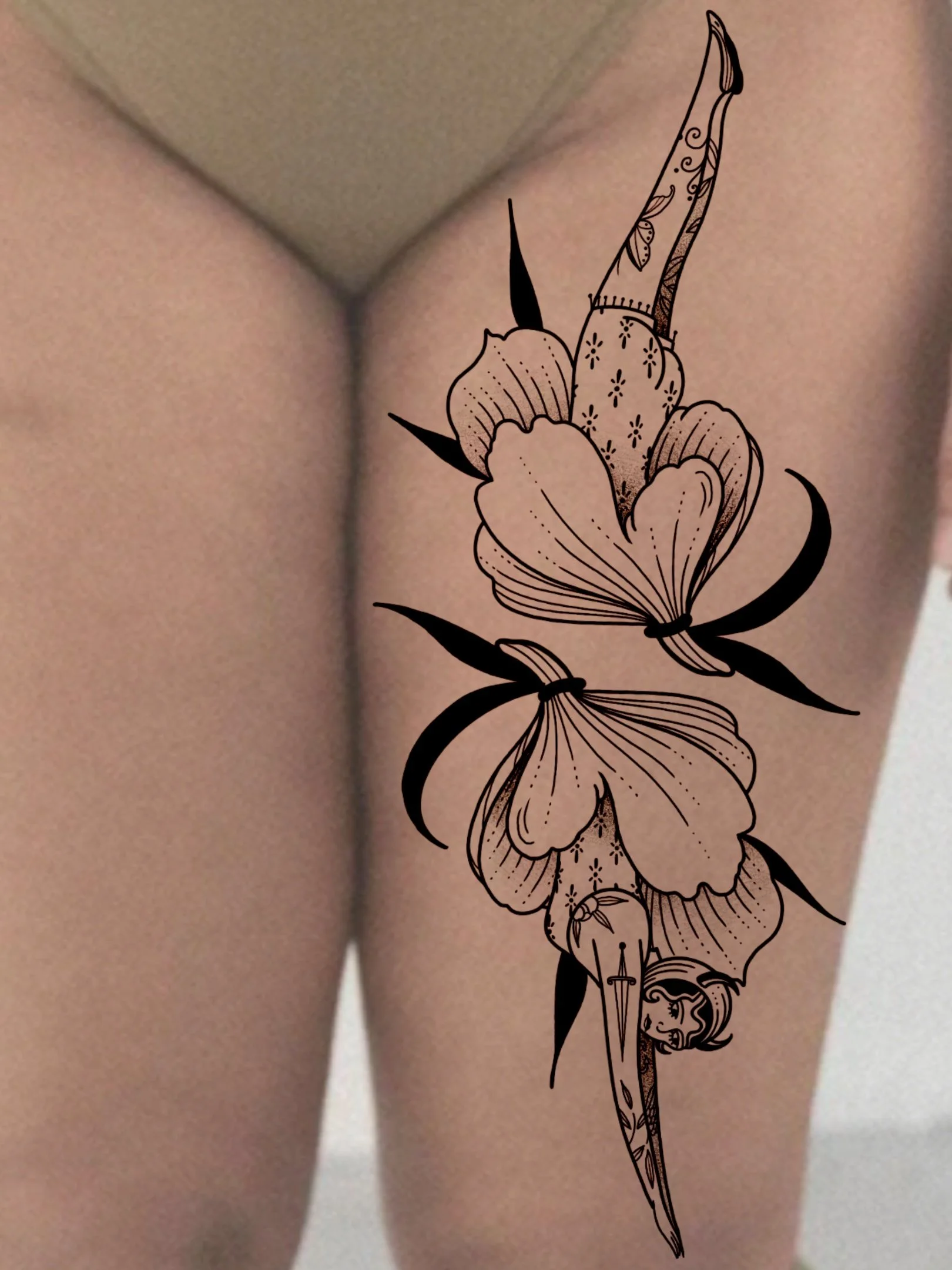 When you arrive we will sit down and talk about what you are envisioning in terms of flora. I have a ton of floral textbooks that we can thumb through if you don’t really know what you want. This type of appointment works really well for gap fills or really large projects. Once we decide on what we are going to do I will draw on you with a sharpie to show you the overall idea/make sure we like the flow of the piece. Once we approve the flow I will go in and start to outline the whole design out with a darker marker. We will take one last look together before we get started to make any changes that you may want.